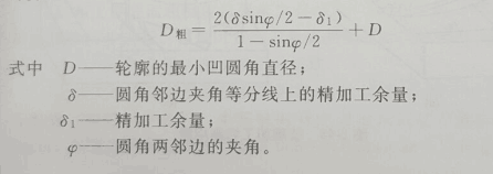 ⑤ 粗加工內(nèi)輪廓面時(shí),銑刀最大直徑D粗可按下式計(jì)算:【如圖所示】