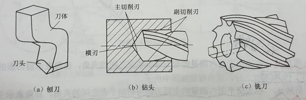 為了讓大家了解其他各類刀具,我公司技術(shù)專家分別以圖示的形式展現(xiàn)給大家。例如刨刀、鉆頭、銑刀等,都可看作是車刀的演變和組合。刨刀切削部分的形狀與車刀相同,如圖(a)所示;鉆頭可看作是兩把一正一反并在一起同時(shí)車削孔壁的車刀,因而有兩個(gè)主切削刃,兩個(gè)副切削刃,還增加了一個(gè)橫刃,如圖(b)所示;銑刀可看作由多把車刀組合而成的復(fù)合刀具,其每一個(gè)刀齒相當(dāng)于一把車刀,如圖(c)所示。