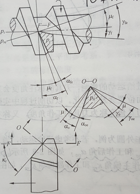 車(chē)端面或切斷時(shí),加工表面是阿基米德螺旋面【如下圖所示】是指橫向進(jìn)給運(yùn)動(dòng)對(duì)工作角度的影響。