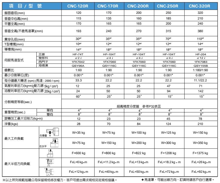 加工中心第四軸型號有:CNC-170R、CNC-200R、CNC-250R、CNC-320R、CNC-400R,其中170R代表盤面直徑。我們山東正工數(shù)控設(shè)備有限公司常配的四軸廠家有:臺灣恒望,旭陽、譚興、譚佳,國產(chǎn)的有煙臺環(huán)球,泰格爾等,我們可根據(jù)客戶的精度加工要求進(jìn)行合理選配。